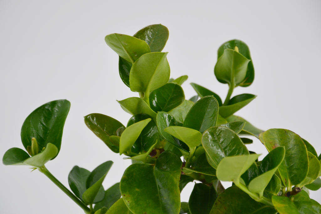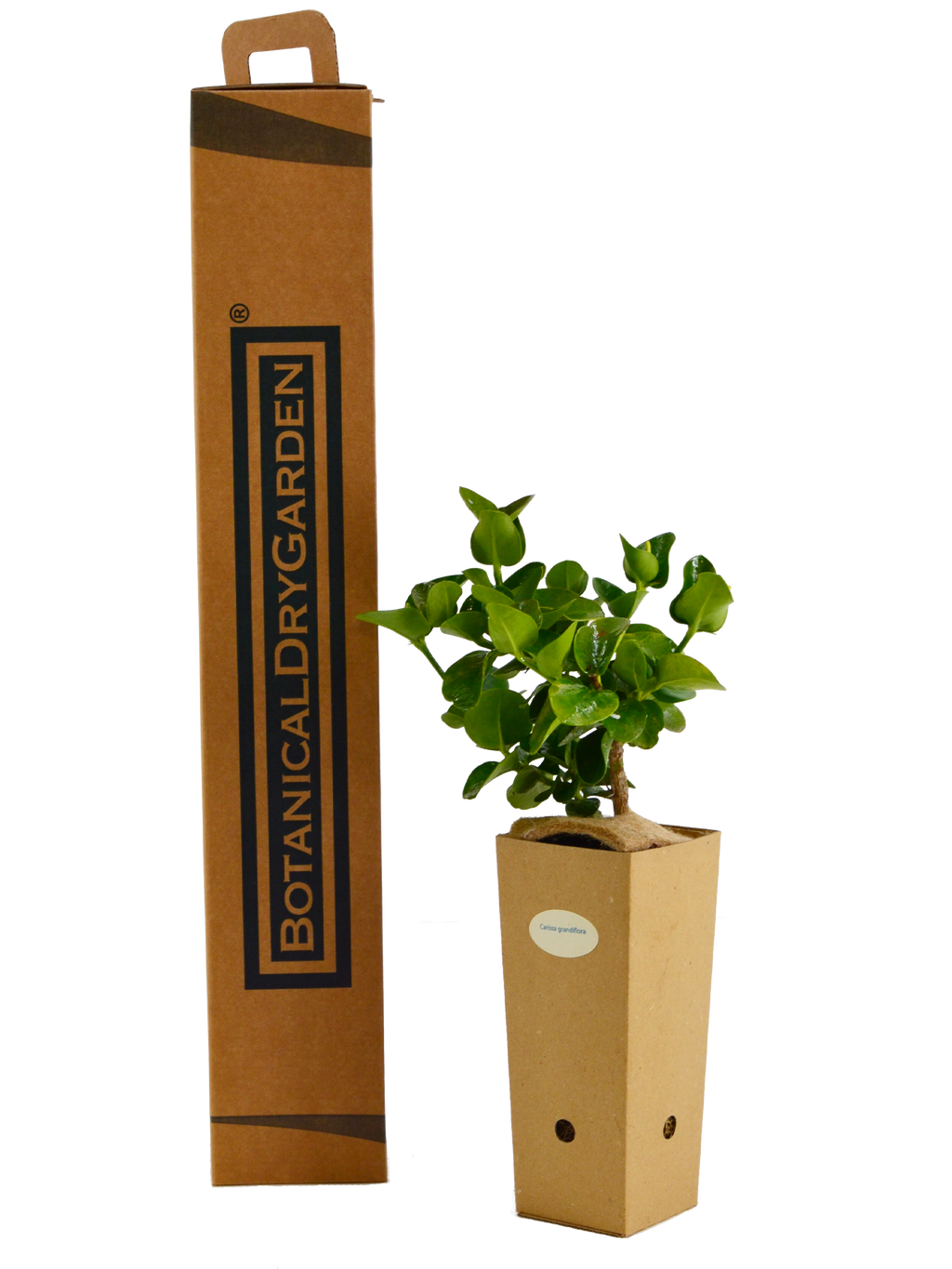 La Carissa grandiflora è una parente stretta della Carissa macrocarpa. Come lei è un arbusto sempreverde originario del Sudafrica, ma il fogliame è lievemente diverso: mentre infatti la Carissa macrocarpa presenta foglie rotonde estremamente ravvicinate tra loro, il fogliame della Carissa grandiflora è leggermente appuntito e molto più distanziato. Il colore verde brillante delle foglie rimane invariato in entrambe le varietà, così come la candida fioritura.